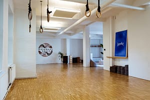 Das Studio bietet Gestaltungsmöglichkeit für verschiedenste Projekte. Egal ob Workshops, Yoga, Bewegungskurse, Offsites & Foto/Video. Die vollausgestattete Küche, 30qm Lounge-Area, die Umkleidekabine und moderne sanitäre Anlagen ergänzen die Qualitäten des Hauptraums perfekt.